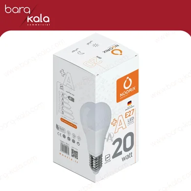 لامپ ال ای دی حبابی 20 وات نوریکس پایه E27 در دو حالت نوری آفتابی و مهتابی با دمای رنگ نور 2700 و 6500 کلوین عرضه شده است. با استفاده از یک دیفیوزور به رنگ مات، نور ساطع شده یک دست و صاف تر است. تکنولوژی بکار رفته مانع از ایجاد اشعه UV شده و برای انسان مضرر نیست. طول عمر این لامپ 25 هزار ساعت است و در دمای منفی 10 درجه تا مثبت 40 درجه سانتیگراد روشن میشود. درجه حفاظت این محصول IP20 تا از نفوذ گرد و غبار به داخل لامپ محافظت شود. برای ایجاد توان بالا و شار نوری بیشتر از تکنولوژی ال ای دی (LED) با رده انرژی +A که نشانگر مصرف پایین این لامپ است